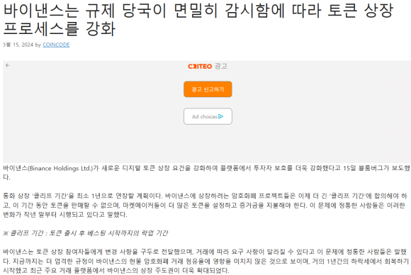 2024년 3월경 바이낸스 상장 투표에 델리시움이 1위를 차지한다. 이는 강력한 커뮤니티와 홀더들의 힘도 있겠지만 바이낸스에서 상장 프로세스를 강화한다는 (클리프 기간 최소 1년으로 연장, 클리프 기간은 토큰 출시 후 베스팅 시장까지의 락업 기간) 발표에 맞춰 팀 물량을 락업을 한 것처럼 바이낸스 상장 요건에 맞춰가는 모습니다.